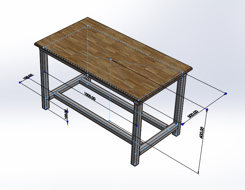 This design features a simple table with steel frame and a wooden table top The dimensions can be gotten from the pictures attached to the file