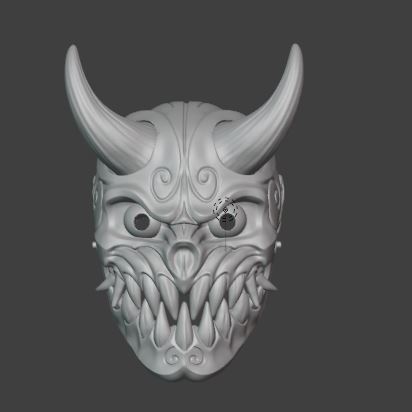 This model is designed as a wearable Oni mask combining traditional Japanese demon inspiration with a bold fantasy-horror sculpt style. The facial structure is shaped to follow human face proportions