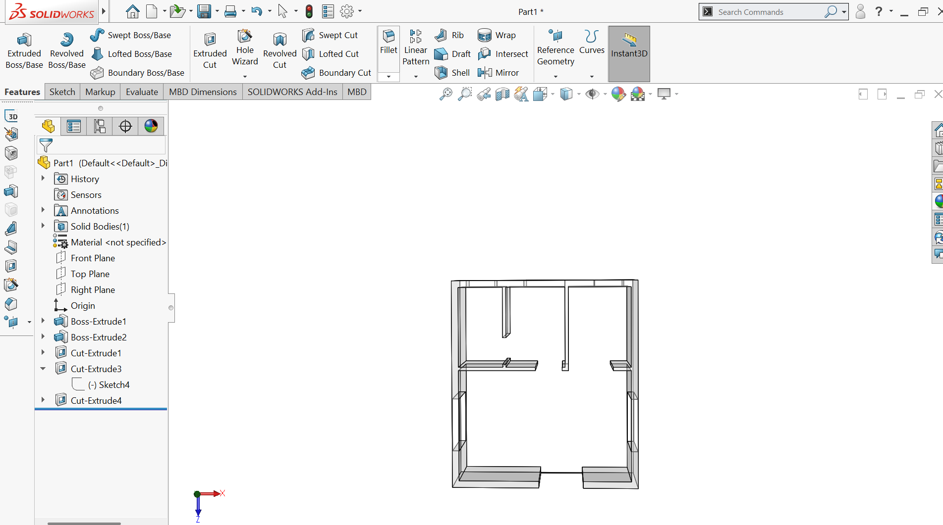 This project is a 3D residential floor plan model created in SolidWorks. It shows a clear and accurate layout of rooms with properly defined walls